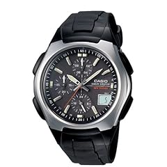 The casio Men's Waveceptor Atomic Dual-Time Watch #WVQ400J-1 combines convenient, athletic attributes and sophisticated styling. With a stainless steel case and bezel, a black resin band, and a black dial, this timepiece is a fashionable, durable choice for everyday wear. Its unique face includes three subdials, small white indices marking each second, faceted silver-tone indices marking each hour, three hands, and luminous accents. A small, digital display at four o'clock provides added functionality, while a window made of acrylic acid resin protects the face. This watch is water resistant to 330 feet and is backed by a one-year manufacturer warranty.I purchased this watch about 2 months ago, and I wear it every day, and really like it. I also have another Casio WaveCeptor watch, and compared to it, this one will not synchronize as dependably. If left in a window it will synchronize every night, but only about 50% of the time if left in a dresser drawer or in the medicine cabinet. The other WaveCeptor I own (which ironically was much less money - it's all digital), will synchronize in the basement!